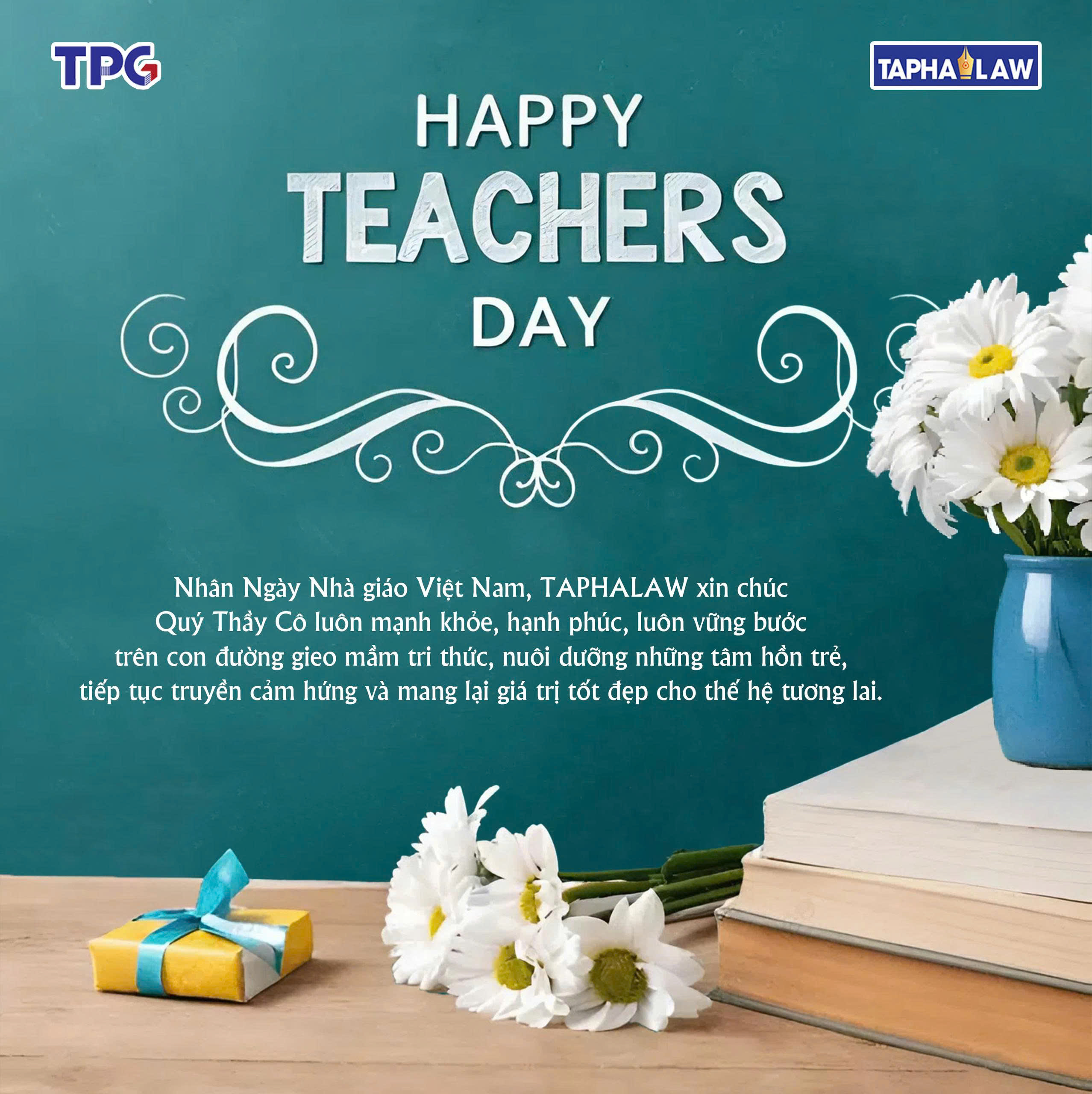 Nhân ngày 20/11, TAPHALAW trân trọng gửi đến Quý Thầy Cô lời chúc sức khỏe, hạnh phúc và thành công. Xin kính chúc Quý Thầy Cô một ngày Nhà giáo Việt Nam thật ý nghĩa, tràn đầy niềm vui và tự hào với sự nghiệp giáo dục cao quý.