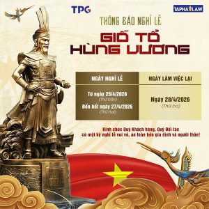 TAPHALAW xin thông báo đến Quý khách hàng, Quý đối tác cùng toàn thể cán bộ công nhân viên lịch nghỉ lễ như sau: Nghỉ lễ Giỗ tổ Hùng Vương: Từ ngày 25/04/2026 (Thứ bảy) đến ngày 27/04/2026 (Thứ hai).